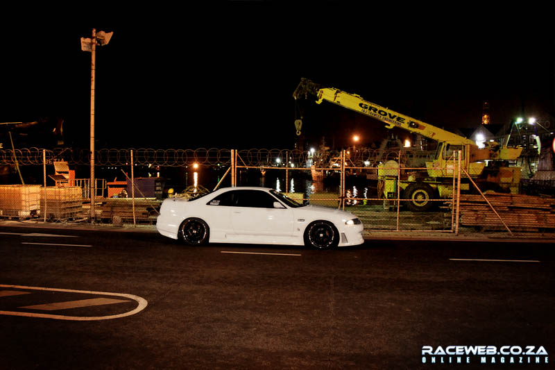 night, in a fully tricked out R33 Skyline.