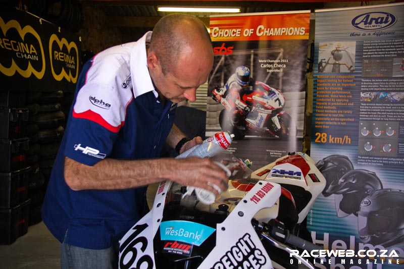 the Racebase Motorcycles garage. It was an hour before Ronald’s